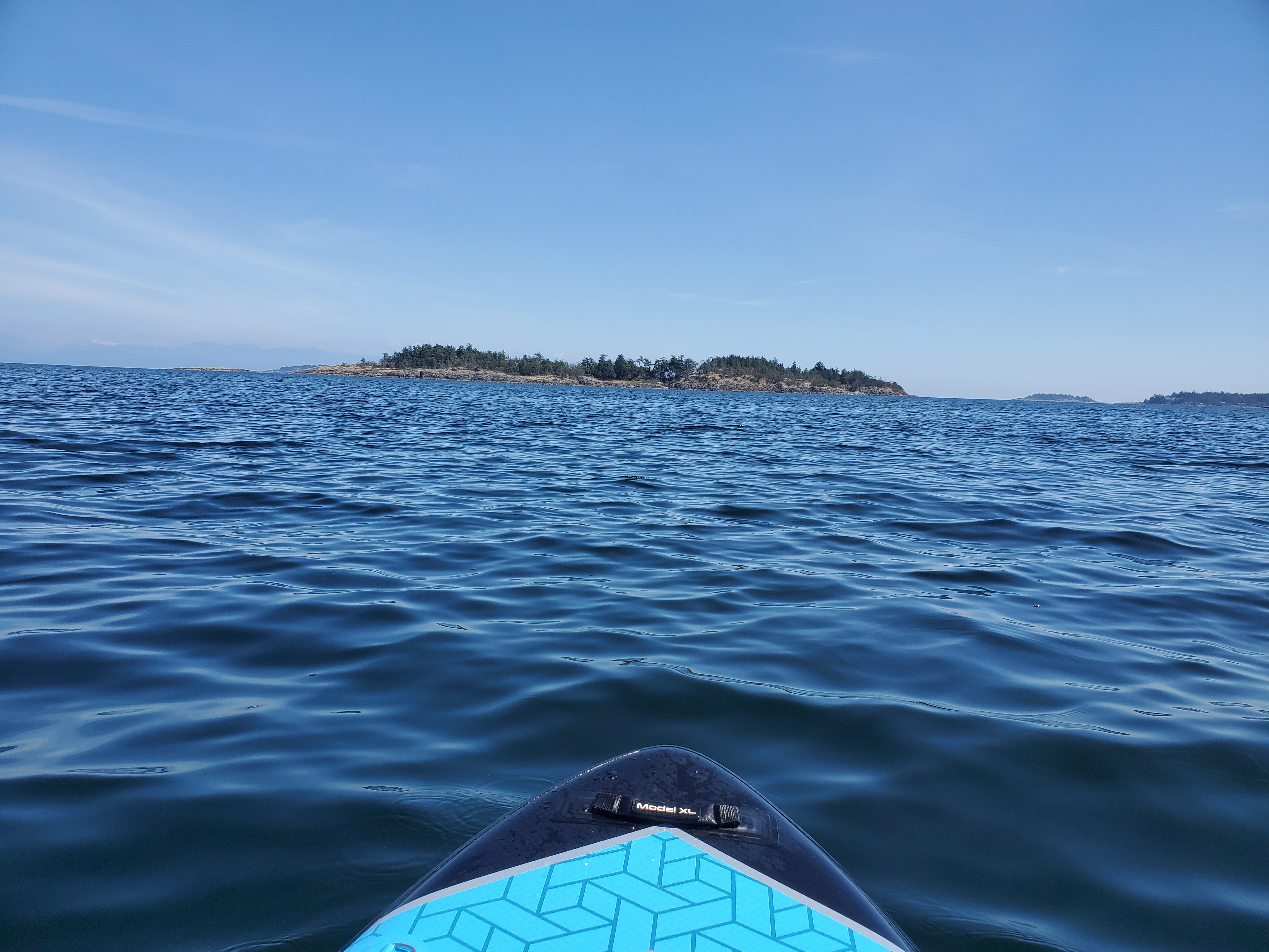 I get the green light for an afternoon paddle. I had been eyeing up the island sitting out from the bay. I get my kit in order (water, inflatable PFD) and I am off. The tide is low so it is a short board carry over the beach to the water’s edge. And then some shallow paddling for a way out before hitting the edge of the land shelf.