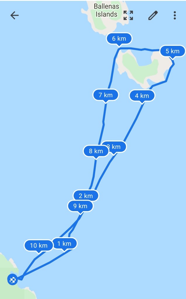 The map above is a strange situation in Google Maps where the satellite view of Ballenas Islands shows empty space. So it looks like I went out and circled nothing. Yet in Google Maps map view the Ballenas Islands are depicted.
