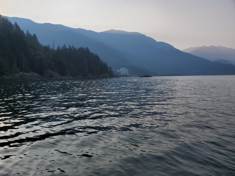 Soon we could see the Britannia Mine Museum in the distance. It appeared much closer than it was. With the end in sight, I thought the paddle was almost over. It turns out I am not the best at predicting paddle times or distances visually.