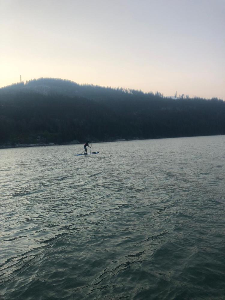 We made it in just under two hours. So despite not being able to sight distances by time on the water, my paddle plan time estimate was on point. We docked at the boat launch at Britannia Beach. While we were getting out of the water, a kite-surfer was getting ready to get. He appeared to be launching with a jet-ski for support/travel.