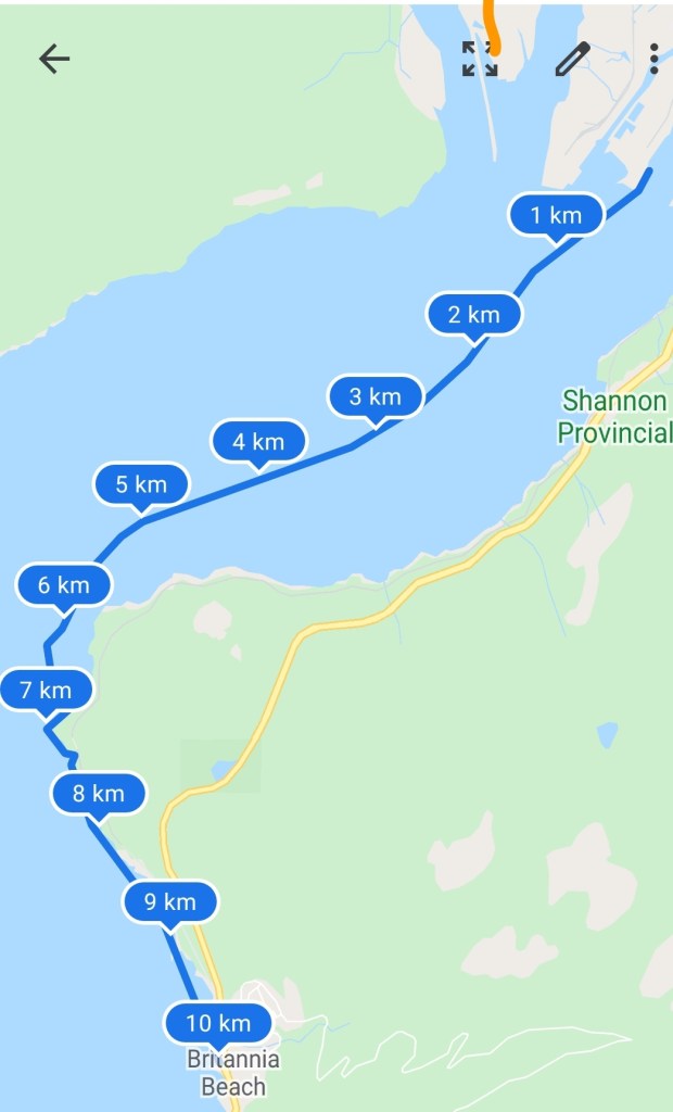 ROUTE: Newport Beach, Squamish to Chatterbox Cafe, Britannia Beach (one-way trip)