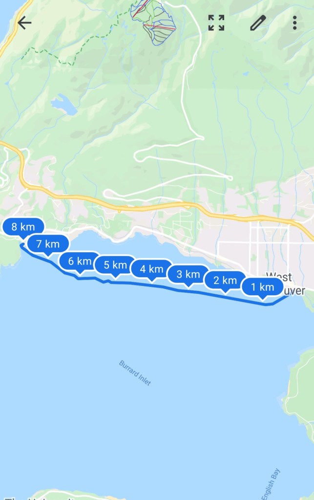 - Hollyburn Sailing Club to Caulfeild Cove: ~15 min