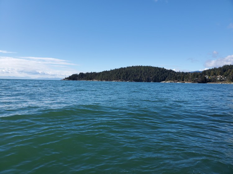 Coming out of Caulfeild Cove the wind wasn’t that strong but you could feel some swell. I paddled out towards one of the anchored ships, then changed course to follow the waves inland. I repeated this a few times zig-zagging my way eastward down the coast.
