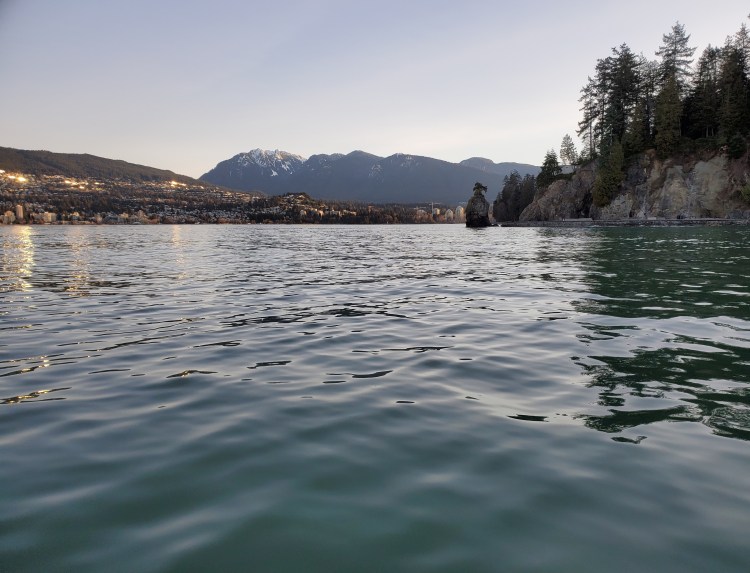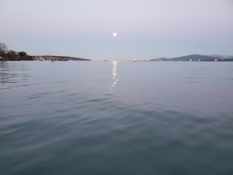 On my paddle back to Vanier Park I worked on my pivot turns and board walking with both shuffle and cross-steps. I am both happy and embarrassed to admit that I took a solid plunge just off of the coast of Second Beach.
