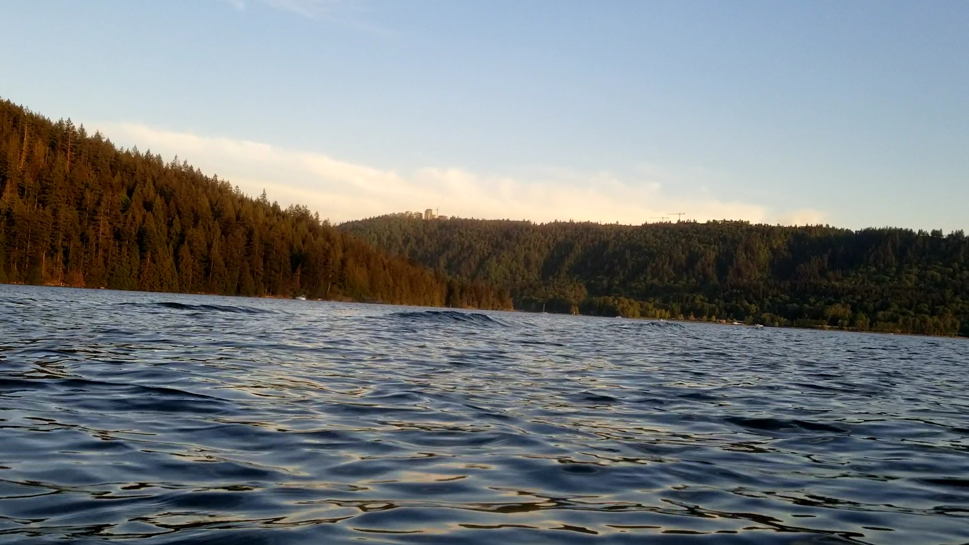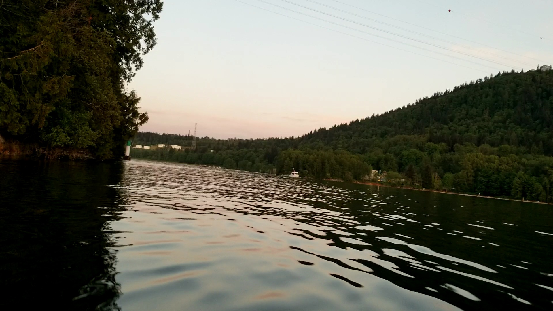 Luckily I was right and I was able to get out of the house by 19:30. So I was on the water just after 20:00. I left from my regular launching point at Lowry Waterfront Park. It was busier than my typical launching times with several trucks with paddleboards on the roof in and around the parking lot. But it seemed all the SUP boarders were done on the water. I did see two kayakers out on the water, one double kayak to the south towards Cates Park crossing the fjord and a single kayak to the north towards Grey Rocks Island. I used the paddle across to Boulder Island as my warm-up.