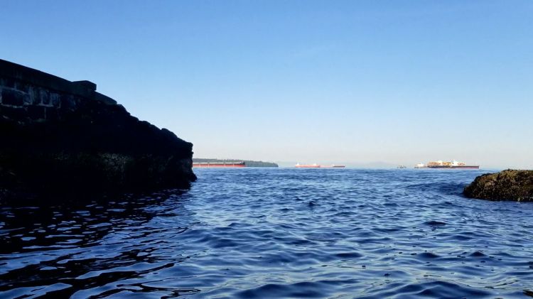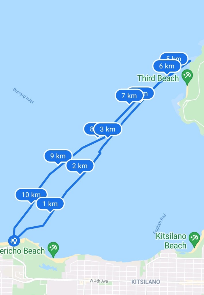 As I made my way out into the bay and looked towards Stanley Park I remembered that my friend, Peter, had paddle to Slhx̱í7lsh (Standing Man Rock) the day before. I decided to see if I could make the crossing from Locarno. I had paddled there before, but always leaving from Vanier Park.