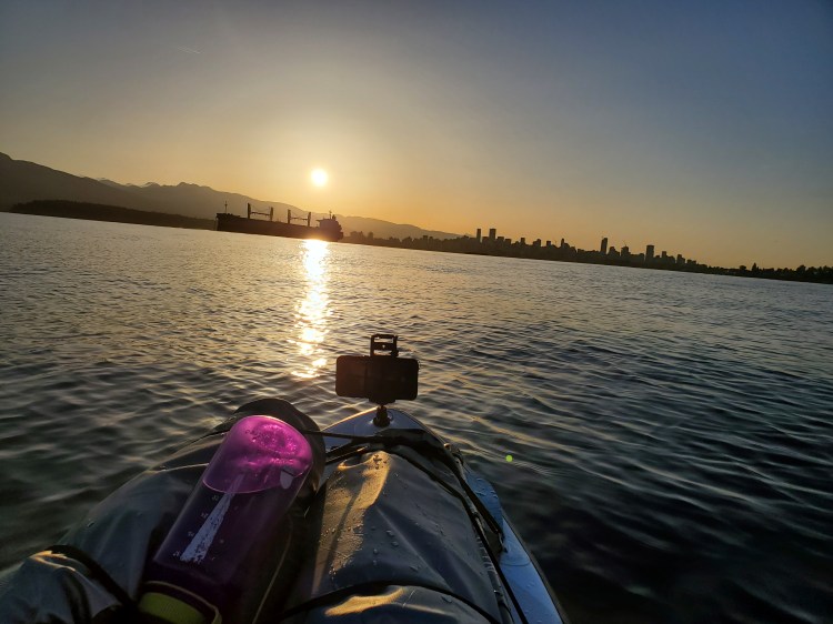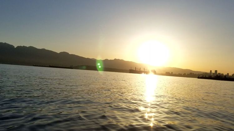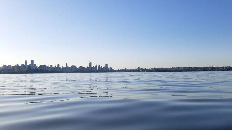 After looking over my shoulder scanning for boat traffic I decided to square up my board and capture some cityscape, English Bay, and the entrance to False Creek.