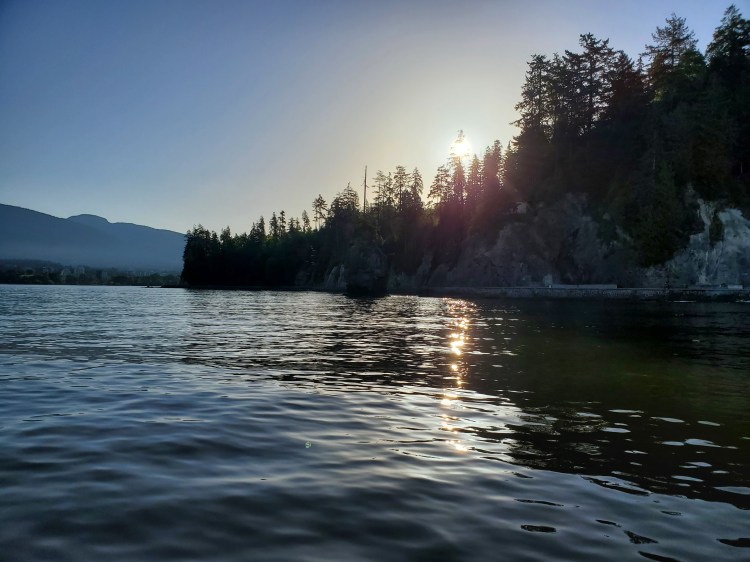 It was a glorious morning. I was a little too late to catch the sunrise from the water but below is the sunrise from the parking lot at Locarno Beach. I was impressed by how many other people were out and about for sunrise, including paddleboarders, fishermen, swimmers, and sun watchers.