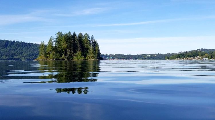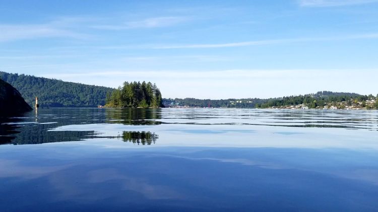 I launched from my usual spot, Lowry Waterfront Park, and the water was quiet and calm at 06:00. As I made my way over to Boulder Island the sun was rising over the top of Eagle Mountain in the background.