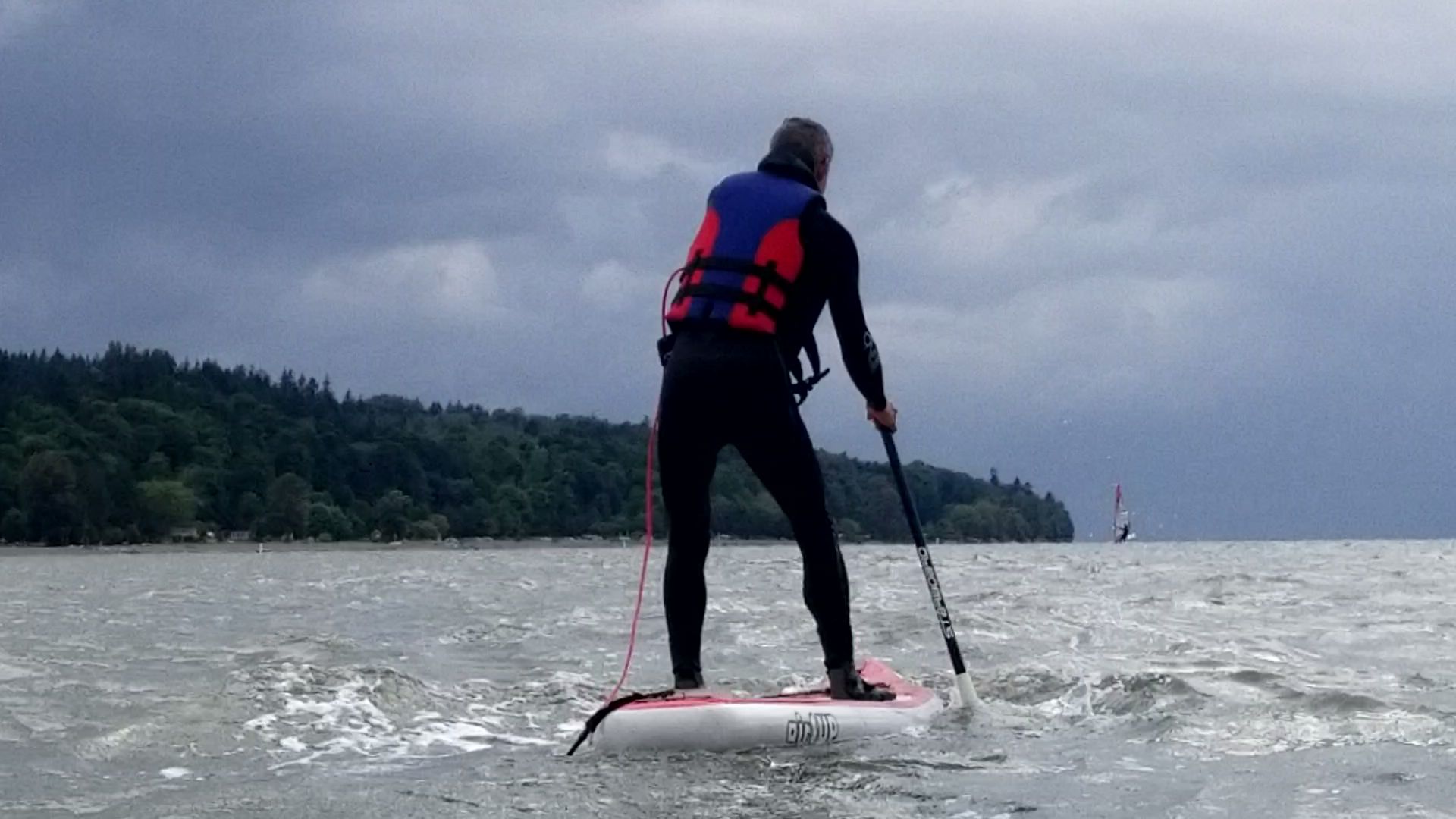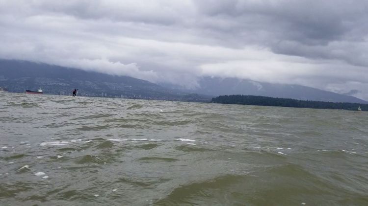 We made our westward. Near the Royal Vancouver Yacht Club, we were both feeling pretty warm. We decided to work on some choppy water pivot turns with the thought that we would likely fall in and cool off. Our plan worked.