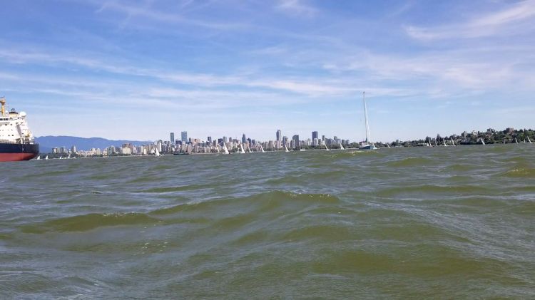We took a short pause just offshore from Point Grey Park to check the time. We decided to top up our parking at Vanier Park as we were having so much fun. That way we could do a few upwind/downwind exchanges to get extra runs in before reaching False Creek. You have to love the convenience of PayByPhone.
