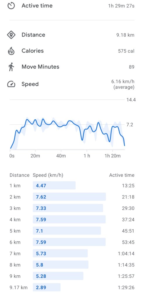 And below is the route that we took tracked with Google Fit.