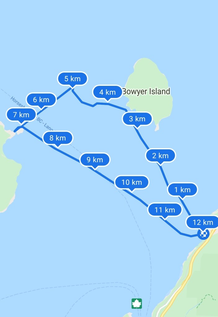 ROUTE: Ansell Point to Bowen Island (Finisterre Island) Round-trip