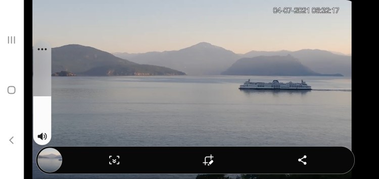 It dawned on me that I might be able to get some interesting images from the Howe Sound webcam site. I had used this site previously to confirm my estimates of when ferries leaving from their respective terminals would round Tyee Point. So I knew that it could capture the ferries passing by. I wondered if I would be visible off in the distance? I opened up the site and took a few screenshots. I could see the ferries but, I couldn’t tell at the moment if I was visible. Here are the screenshots. There was no sign of me on my SUP in the distance.