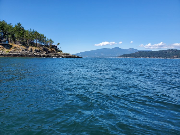 As I rounded the point, I confirmed both visually and digitally that I had enough time to cross the mouth of Snug Cove without the threat of the ferry. I power paddle through before settling into a more casual pace to traverse the rest of Mannion Bay/Deep Bay.