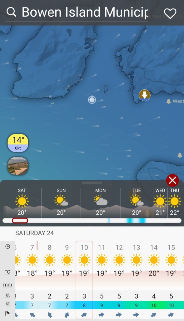 I committed to this weekend despite not having a paddling partner. Given that this one-night trip had already taken more than two months to come to fruition I wasn’t about to pass up the great weather and favourable work/family schedule. A screenshot of the forecast from Windy.com is below. Light winds and clear skies. Though I was well aware that the hotter temperatures would make for stronger anabatic winds at the mouth of Átl’ḵa7tsem. And the trouble with doing a circumnavigation is that at some point your tailwind is a headwind or vice versa. Based on the weather leading up to the weekend my plan was to most likely circumnavigate the island counter-clockwise, but I would make the call depending on the conditions.
