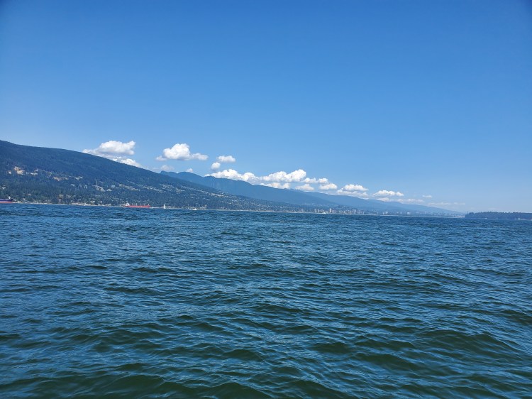 A short way into my crossing I took stock of the clouds over the top of the North Shore. Since taking up paddleboarding I have paid more attention to weather phenomena and gained a fascination with meteorology and climatology with respect to the four W’s: weather, wind, water, and waves. It was striking to see how the mountains had forced the air up cooling it off and allowing for moisture in the air to condense forming the clouds.
