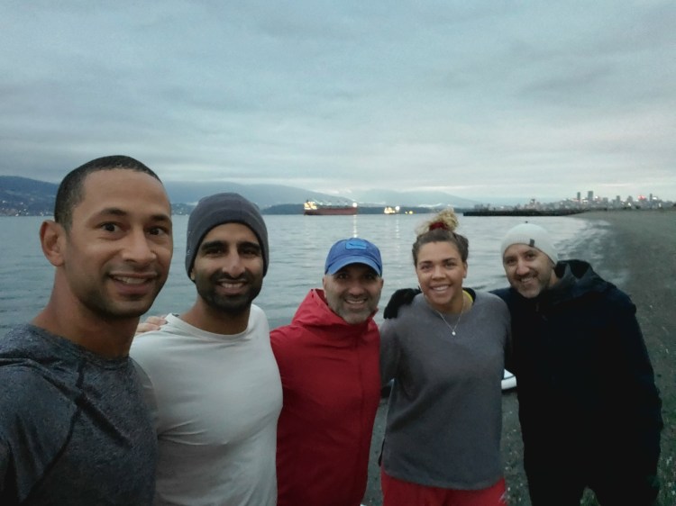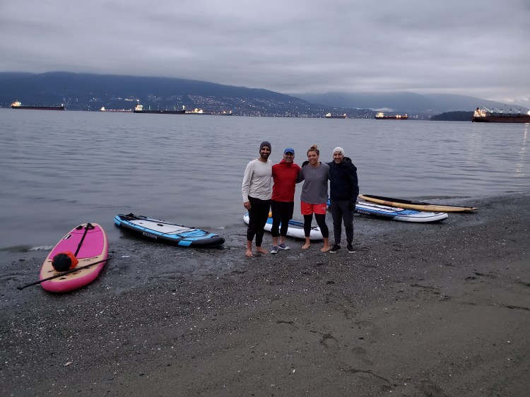 We met at Locarno Beach to get our kit in order. Below are Aieisha and Nav pumping up in the morning twilight.