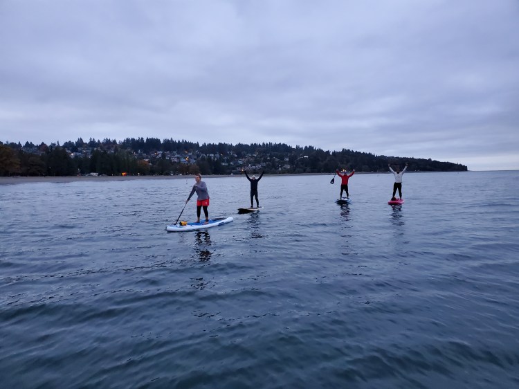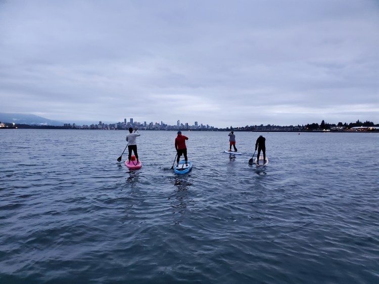 After some time on the water, we settled on paddling over to peep the properties along Point Grey Road from the water. Below we are making our way over, leisurely.