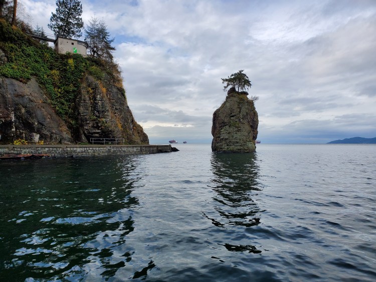 With the weather holding up and next to no boat traffic in the bay, I decided to paddle past Slhx̱í7lsh (Standing Man Rock). I wanted to get a glimpse of the Lions Gate Bridge from this side of the bay. In the past, I have been reluctant to go further as you will enter the restricted seaway leading to the Port of Vancouver. I was informed of this last summer when I errantly paddled in the area.