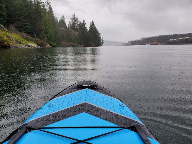 As I made my way over to Burns Point, I took advantage of the calmer waters in Səl̓ilw̓ət (Indian Arm) to work on some one-foot paddling. In my mind’s eye, I was picturing my newfound SUP crush, Yehor Tarasko, and trying to emulate his one-foot paddling prowess. The video below shows his skill at the task. Sadly, I don’t think my attempt was anywhere near a carbon copy. It is a skill that I have been trying to improve lately, after getting the idea and then being re-inspired by the SUPBoarder Challenges.