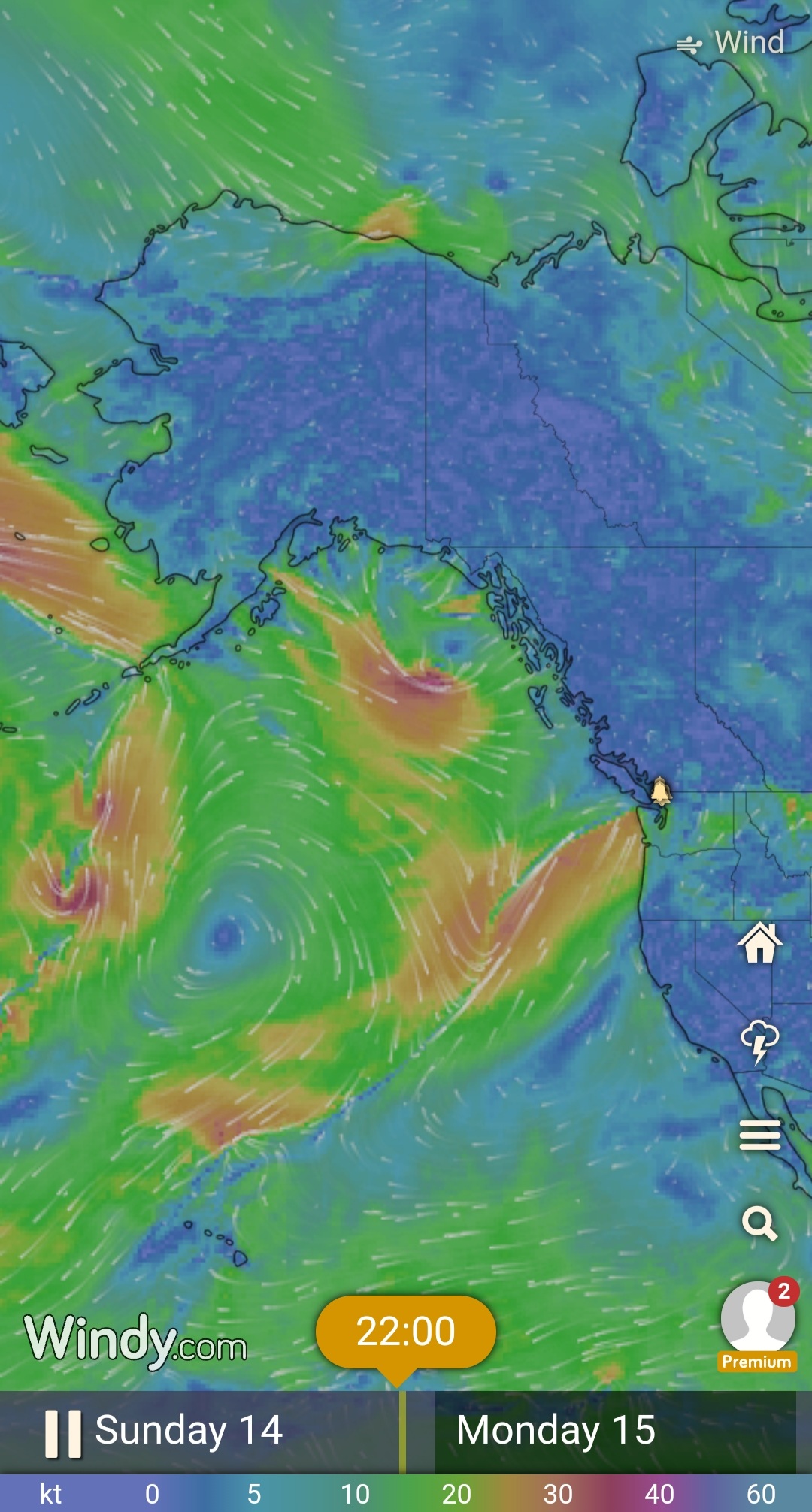 I left from what is now my regular Səl̓ilw̓ət (Indian Arm) launching point at Lowry Waterfront Park. The view across to Belcarra was ominous with socked-in skies but beautiful in that Pacific Northwest temperate rainforest perspective nonetheless. I was setting out on the front end of the arrival of another atmospheric river slated to arrive later in the evening. The atmospheric rivers are sometimes referred to as a Pineapple Express when they arise from the waters around the Hawaiian Islands. Though, this term is not to be confused with the 2008 film by the same name. The images below are from Windy.com on Sunday, and they show the line of the atmospheric river from Hawaii to Vancouver. The wind pattern is colourful image on the left and the rain is the image to the right when you scroll between the two.