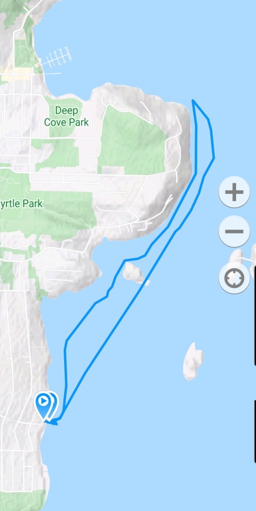 I then continued toward Deep Cove, practicing more one-foot paddling. I’ve improved from my original What’S up Fool post from October 18, 12021. There I captured an epic-ego-eradicating one-foot fail. Below are two one-foot ego-elevating-episodes. First, on the right.