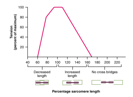 Bringing this back to SUP, for power, speed, and efficiency, the longer, more powerful, and faster the stroke is, the faster and more powerful the vessel will be. Though, there are trade-offs between these variables. Generally, a paddler that can get a longer stroke can pull more water per stroke, resulting in higher power production. However, a longer-reaching stroke does not always result in greater propulsion. Biomechanical properties like the force-length relationship (aka., the length-tension relationship) and force-velocity relationship of muscle govern where and when optimal force development occurs. Muscles can generate the greatest force at their ideal length, which is their resting length. The least amount of force development occurs when shortened or stretched relative to resting length (see graph below). Force development is due to the degree of overlap of the myofilaments of a muscle. Myofilaments are proteins that are the subcellular contractile elements of the myofibril of a muscle cell. For your muscles to contract, these filaments need to interlock (couple) and then pull each other to slide along, shortening the muscle. The so-called sliding filament theory. A schematic of the overlap is shown below on the x-axis of the graph. An analogy would be being in the middle of the rope during a tug-of-war. You can easily pull or release the rope from the middle because you have more rope to grab. Whereas, if you are at either end of the rope you will not be able to pull or hold the rope easily as there is nothing to pull or hold.