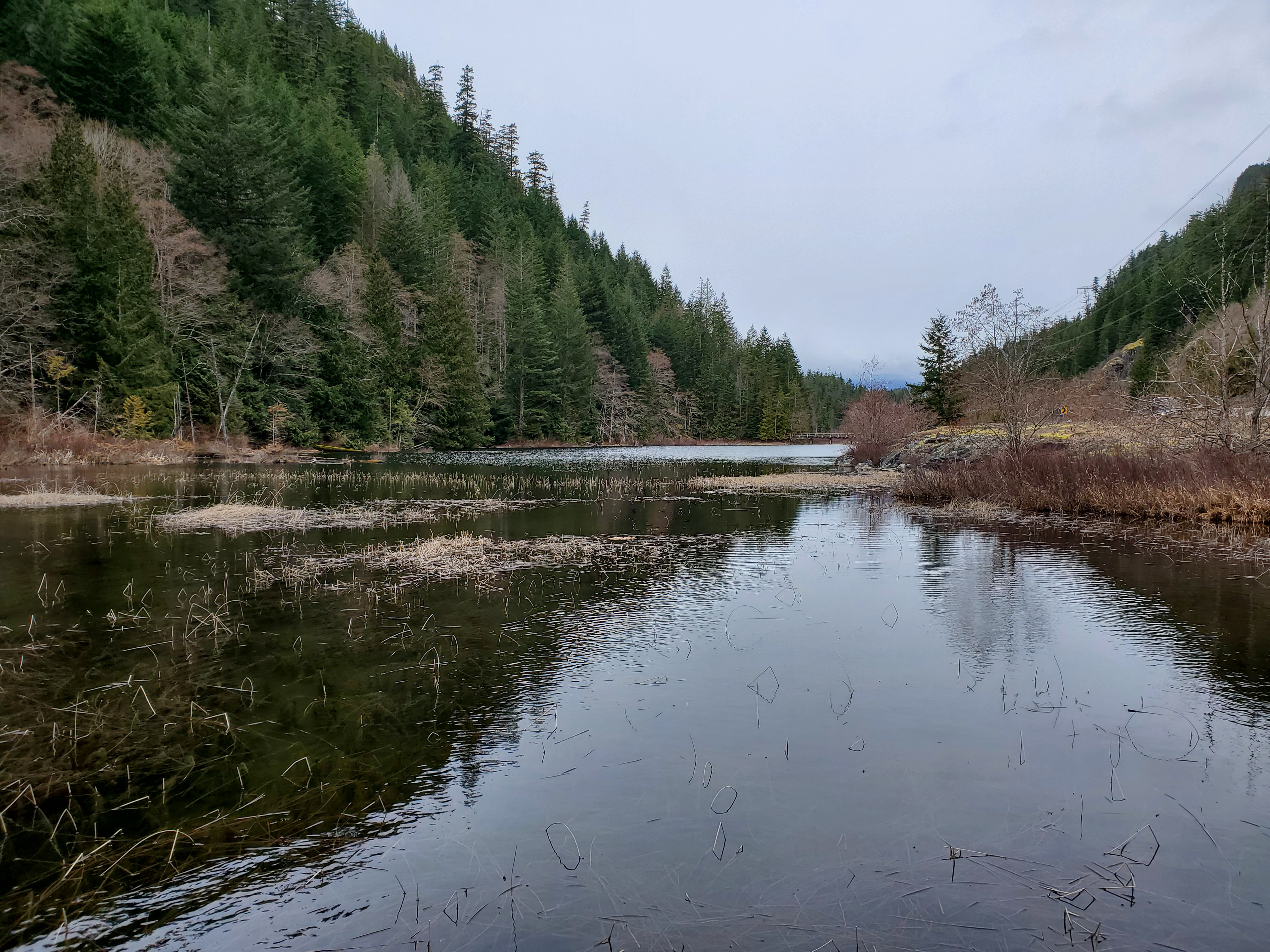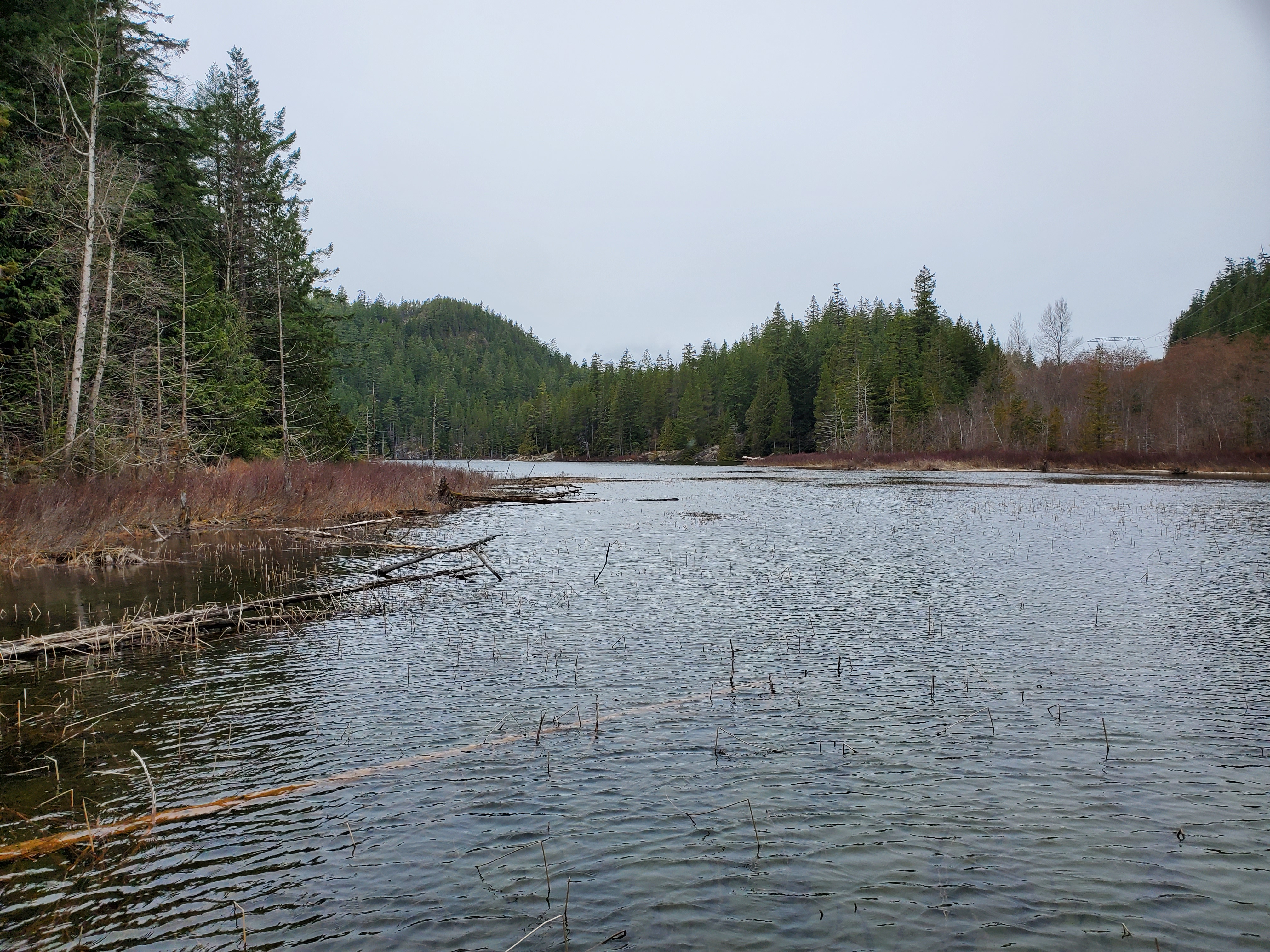 On arrival at Brohm Lake, the weather was much better than anticipated. On the drive up to Squamish, it was evident that it would not snow. But, I was still pleasantly surprised that it wasn’t raining. Underneath socked-in skies, I launched from a small rocky point. It was less than a 100 metre walk from the parking lot.