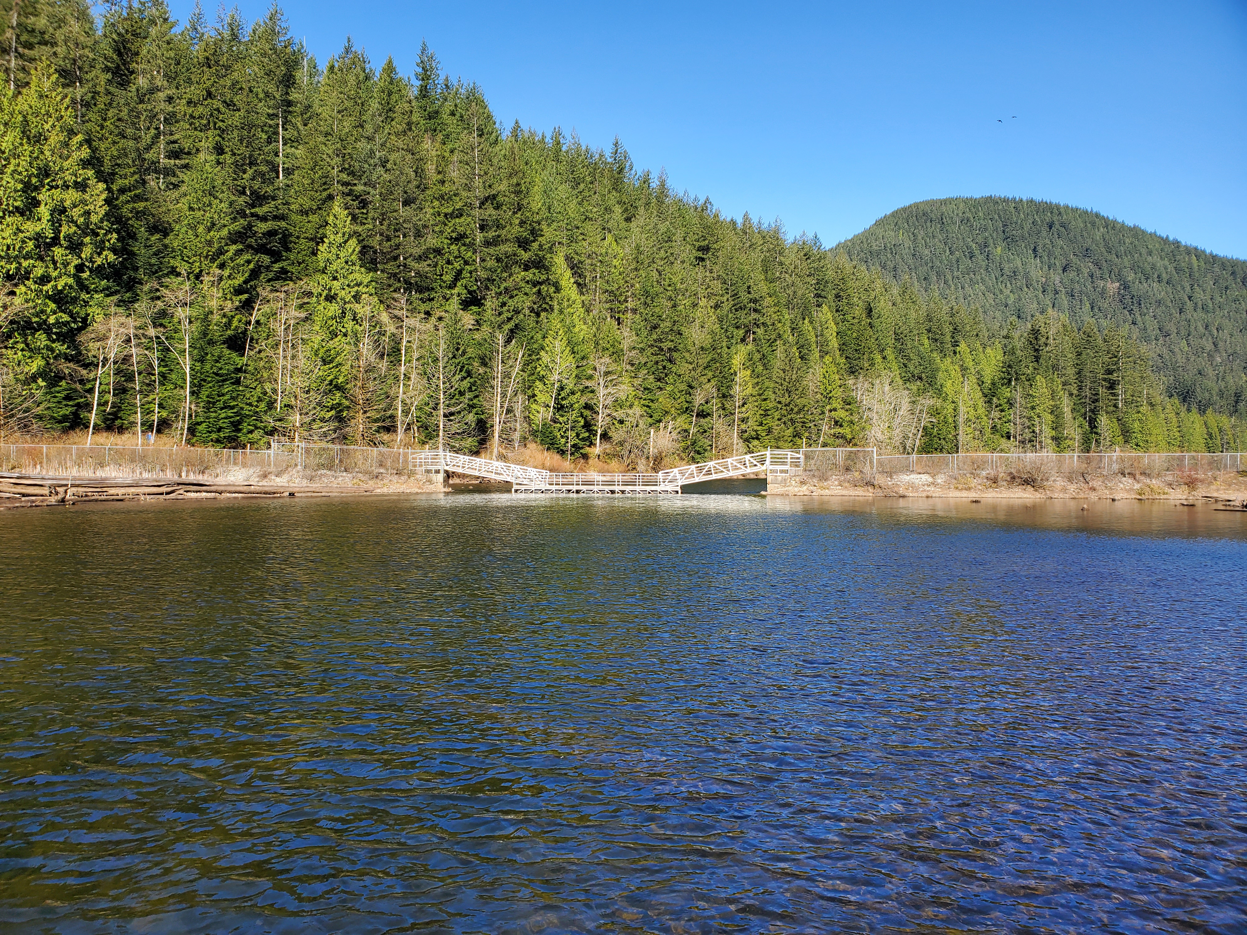 The image below is the view south from near the pumphouse. The intake area is very well marked and blocked off with safety booms. My trepidations were unfounded. I suspect BC Hydro gives off so many cautious warnings to create some apprehension and dissuade anyone from tempting their luck around the hazards.