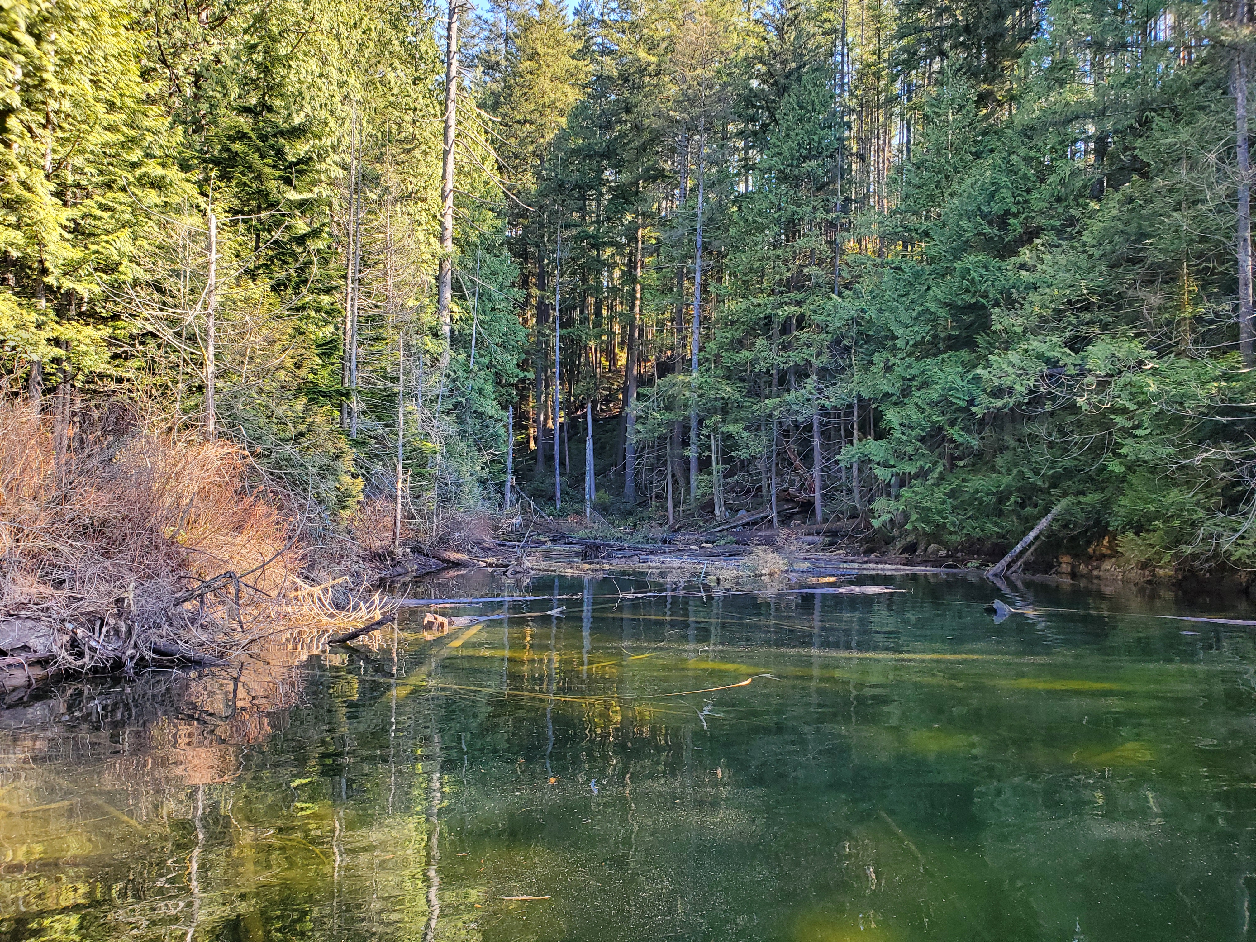 Launching for my return route, I passed by the last hazard area on my lake tour, the Coquitlam Lake Tunnel Outfall. It was only a trickle, but I wasn’t sure if that was normal or due to the tunnel upgrade project.
