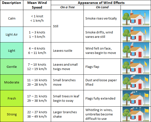 Wind speed, is measured with an anemometer. The wind speed can also be estimated by using verbal descriptions related to the wind’s effect on everyday items through the Beaufort wind scale. The table below from New Zealand‘s METserviceblog site post on “What is a fresh wind?” is the Beaufort scale with pictographic icons of the land effects. I think the images are helpful to have a calibration anchor point for wind speeds. Before getting into SUP, I paid little attention to the wind, but now I feel that I can estimate the wind relatively accurately when out on the water with a mental reference point. The pictographs are a simple reference with near-ubiquitous familiarity.