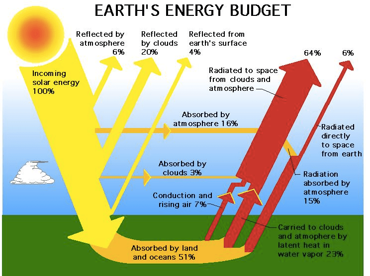 The heated surface of the Earth then re-emits the energy of the Sun as long-wave infrared radiation (for an in-depth explanation, see this video from But Why? on “Why Do Hot Objects Glow? – Black Body Radiation“). Compounds in the atmosphere, known as greenhouse gases, absorb the radiation, resulting in the heating of the atmosphere. This process is the greenhouse effect, whereby the Sun’s energy is trapped, as heat, in the atmosphere (But Why? has a video on the greenhouse effect too). A familiar example of the greenhouse effect is a car heating up on a hot day. Short-wavelength electromagnetic radiation enters the vehicle but cannot exit after conversion to a longer wavelength. The energy from the light (i.e., photons) excites the material of the interior. In doing so, the light loses some of its energy, increasing its wavelength. The lost energy of the light is in fact transferred to the car interior, increasing its molecular vibratory state!