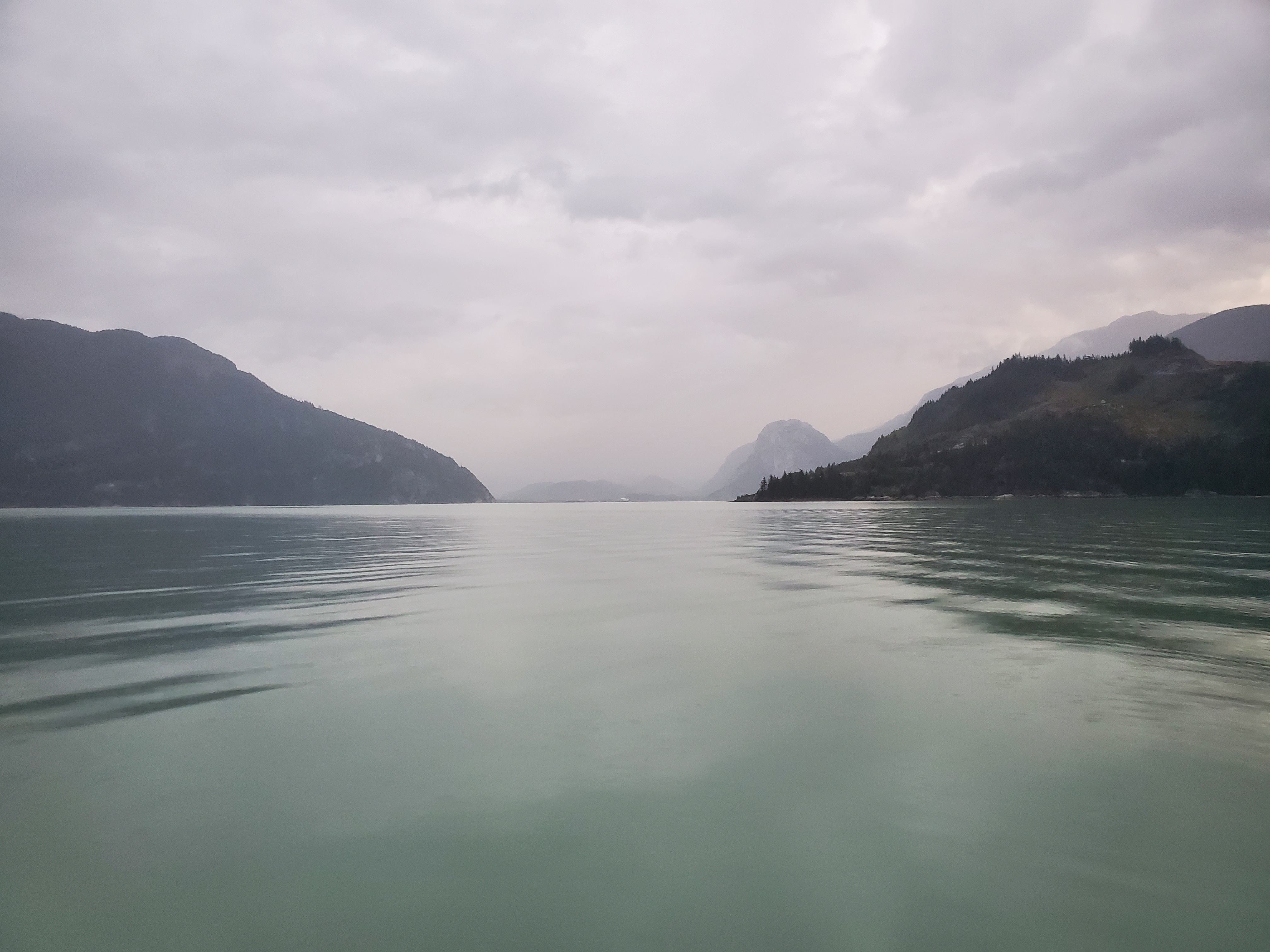 Cutting out and away from Lhaxwm (Anvil Island), I made my way into the heart of Ramillies Channel. Unfortunately, I was in a cross-chop and found myself wanting to turn and ride with the water out of Ramillies Channel towards Christie Islet and Pam Rock. So I alternated between riding with the waves and across them, ultimately trying not to overshoot ínaḵa Lhaxwm (Ramillies Channel) on my ferry across the channel.