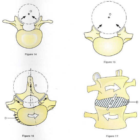 The translational motions are even more difficult to quantify. Clinically, they are assessed by the quality of springiness in the vertebral structures and attempts to ascertain the accessory motions of spinal segments. These are the gliding motions of bones encompassed in arthrokinematics, that complement the osteokinematics. Suffice it to say that the vertebra should have some translational movement.