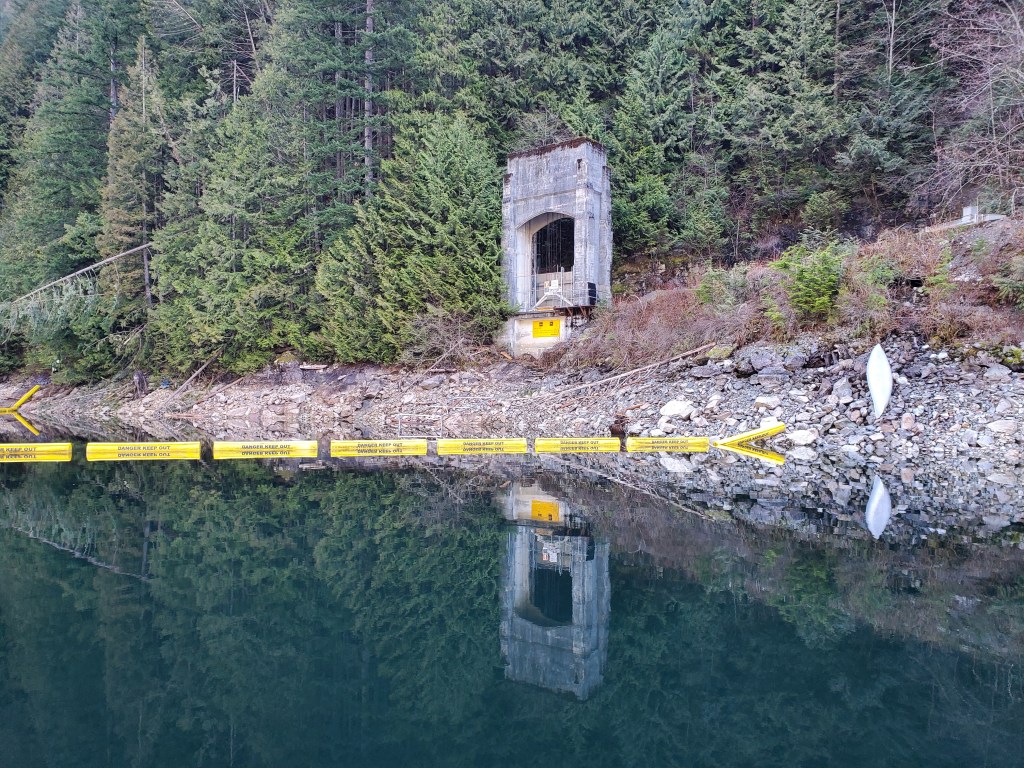 Buntzen Lake, was originally two lakes, Trout Lake and Lake Beautiful, and was renamed Buntzen Lake in 11905 HE. Around the turn of the 200th century HE, work to create a hydroelectric facility began in the area. A 3.6-kilometre hydraulic tunnel was created by blasting through the ridge (Eagle Mountain/Mount Beautiful) connecting Coquitlam Lake to Trout Lake where a dam was created at the north end. The dam would allow Trout Lake to be used as a forebay for a power plant at sea level, 120 metres below in Səl̓ilw̓ət (Indian Arm), the now infamous Buntzen Powerhouse 1. As far as I can tell Trout Lake was later named McCombe Lake after the foreman of Tunnel Camp, Bob McCombe. The details online were vague, but I did come across an article highlighting how treacherous our pursuit of power was. Over 100 workers died in the construction of the Buntzen Lake hydroelectrical facility making it the deadliest construction in the Tri-Cities‘ history.