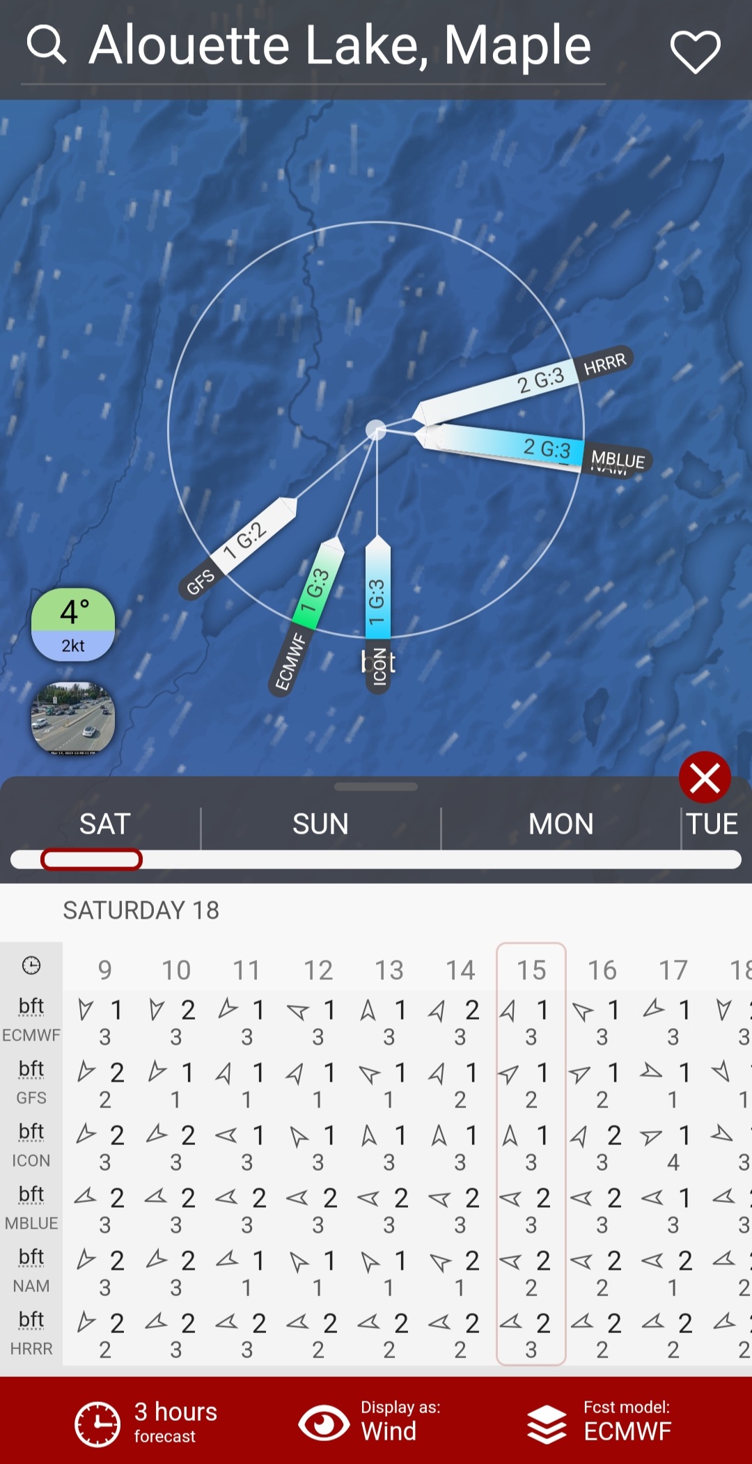 Sure to shit, the forecast was for fair weather, suggestive of southerly squalls (well not exactly squalls, but it was the only “s” wind word that would fit the alliteration). The forecast predicted afternoon southerly winds. There had been afternoon northerly winds forecasted all through the week. If true, the southerly breezes would make for a difficult return. I double-checked the various models, my new verification practice, on Windy.com, hoping that one would give me the forecast I wanted. Talk about a type of confirmation bias. Despite some variability in the models, the consensus (general, not unanimous) was a shift from morning northerlies to afternoon easterlies at best, and southerlies at worst. The slideshow below shows the European Centre for Medium-Range Weather Forecasts (ECMWF), then the comparison of the various models on Windy.com (from top to bottom: GFS, ECMWF, ICON, METEOBLUE, NAM, HRRR CONUS), followed by a comparison forecast from morning to afternoon (i.e., 0500, 1200, 1300, 1500 hours, respectively). Somehow I managed to change the units to the Beaufort Scale (bft) versus knots, so the hourly winds are stronger than they would seem. Notice how the direction of the wind rose changes into the afternoon. My hope was that the HRRR and METEOBLUE models were the most accurate 😛.