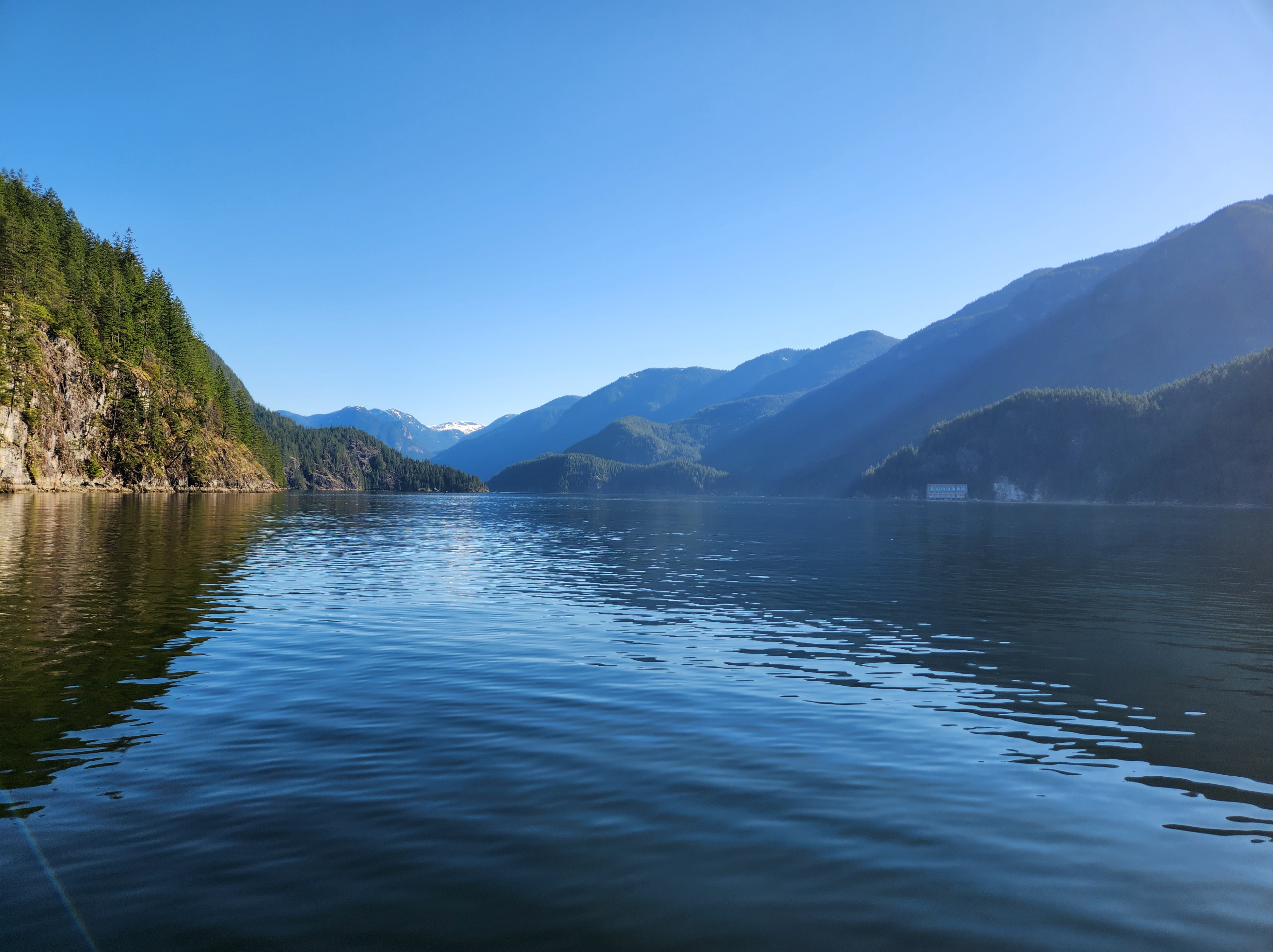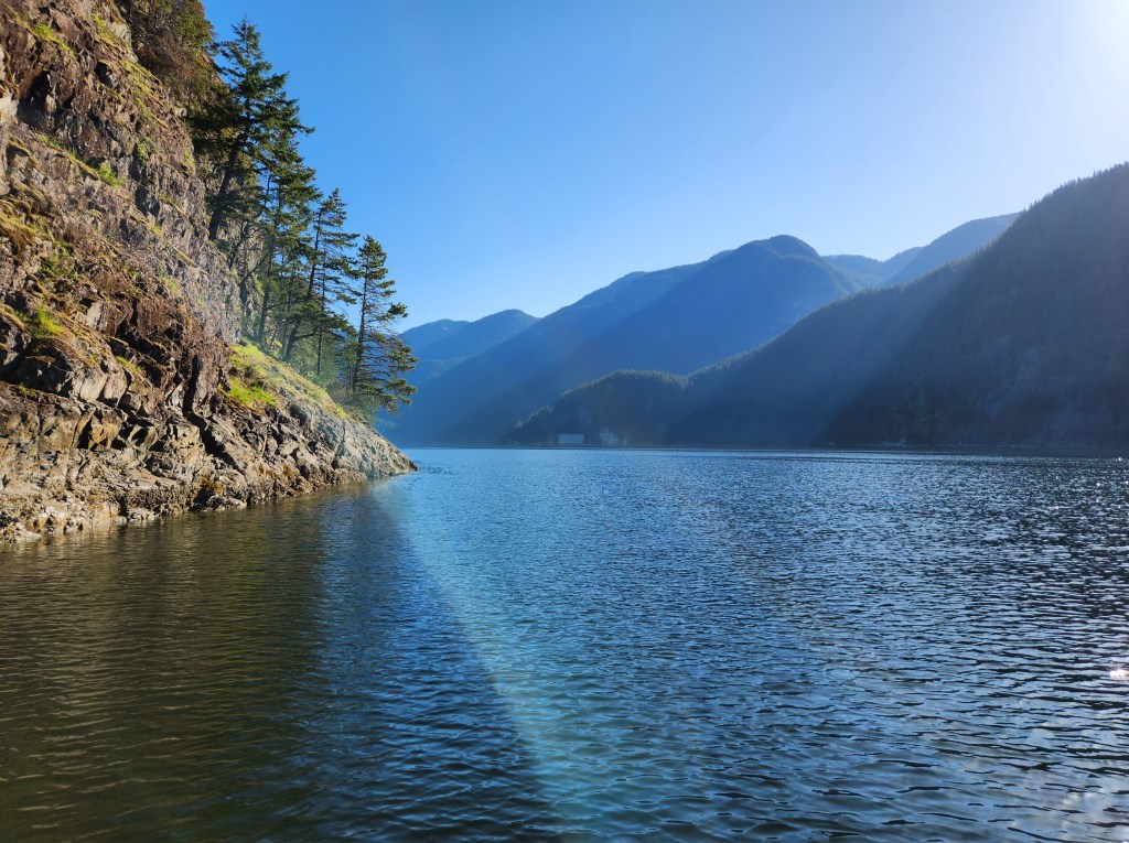 Back at the beach, I paused for a brief photo out across Səl̓ilw̓ət (Indian Arm) to capture the twin powerhouses. Number one on the left and #2 on the right. Then it was back on board for the ride home.