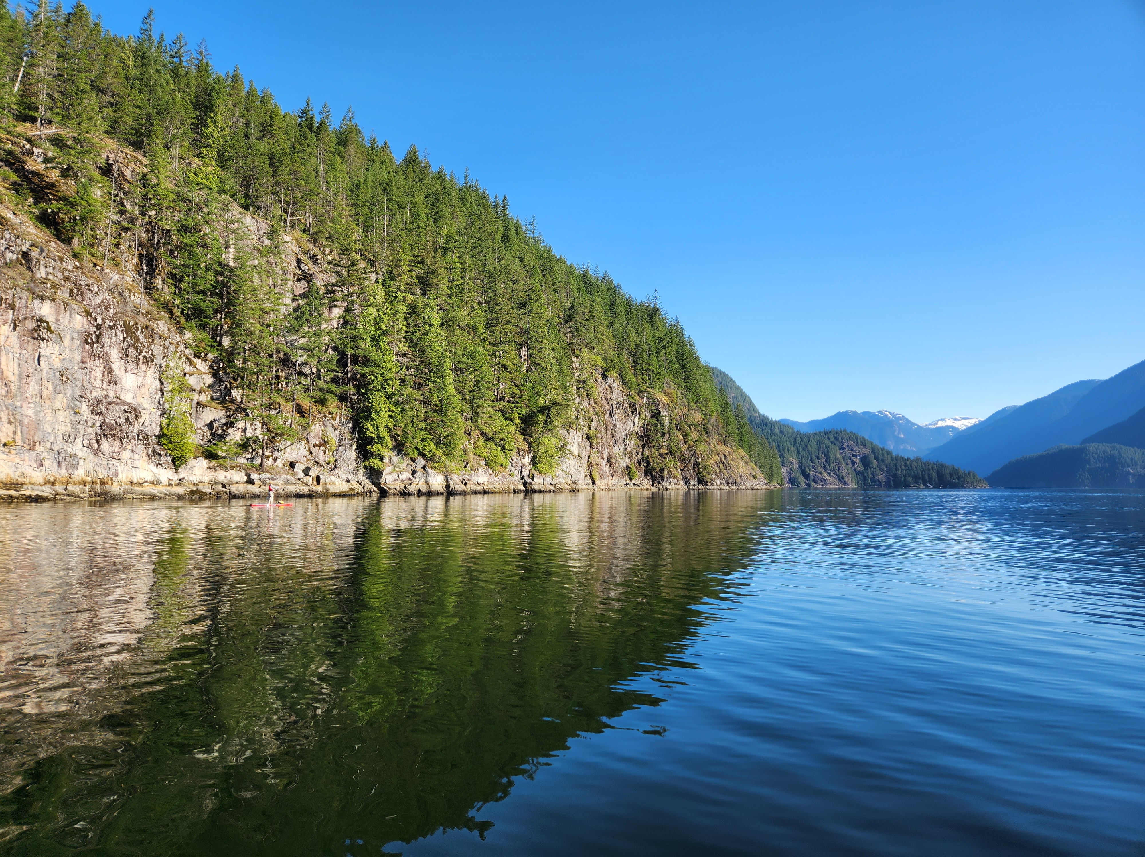 Səl̓ilw̓ət (Indian Arm) is an exceptional place to paddle. With its glacially formed sheer shores, it is an impressive body of water to navigate. Especially, if you travel further north up the inlet to the more secluded areas (which we did not on this trip). However, be cautious that in warmer weather you run the risk of running into southerly inflows for your return. For calmer water, morning paddles are best. Later in the day, the waters are more active with wind in warmer weather and there is ample boat traffic to contend with.